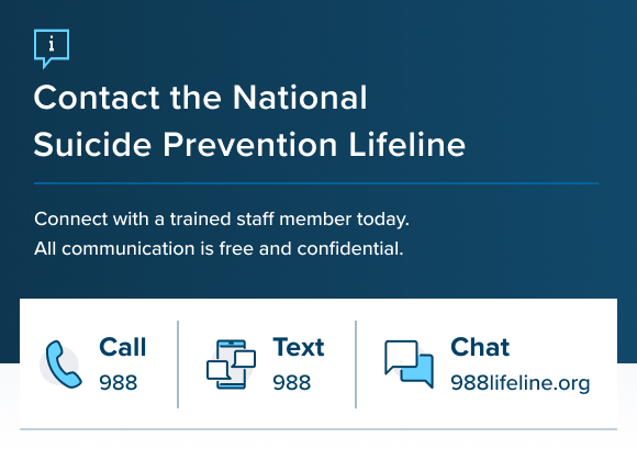 If you or a loved one is struggling with suicide ideation, please seek medical help. Also know that free, confidential support is available 24/7 through the National Suicide Prevention Lifeline if you dial 988. Visit the Lifeline online at https://988lifeline.org.